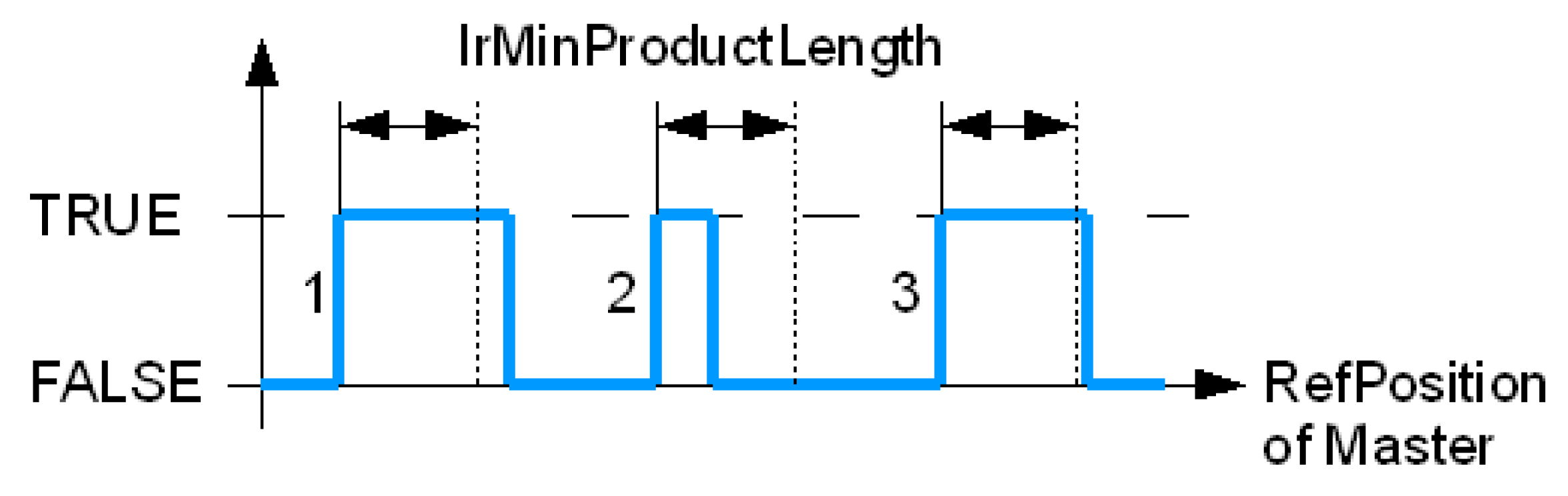 The parameter ST_Synchron.lrMinProductLength determines the minimum product length in units of the master. In order for a start signal to be detected, the Touchprobe sensor must be covered for longer than ST_Synchron.lrMinProductLength. The parameter is only effective in conjunction with Touchprobe signals.