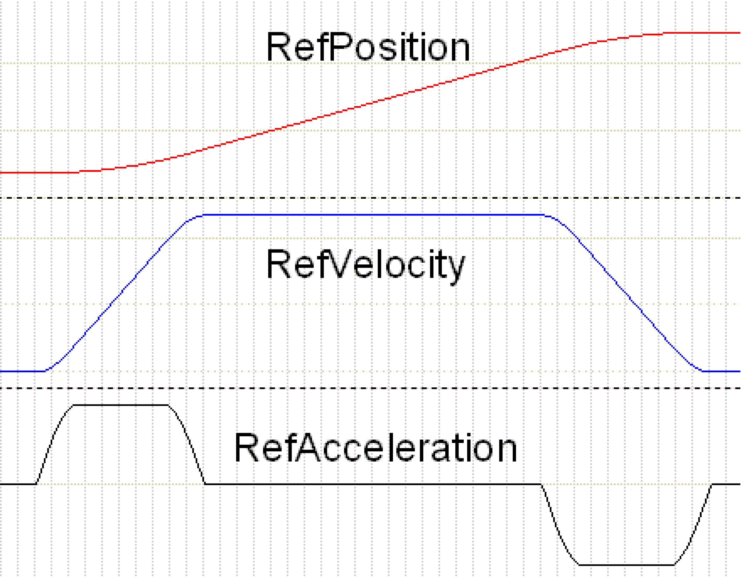 The parameter ST_Synchron.etLawOfMotion determines by means of which law of motion the trains follow the master axis. The following laws of motion have been implemented.