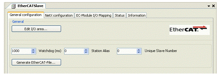 Having added an EtherCAT-Slave to the device tree, you can edit its General settings.