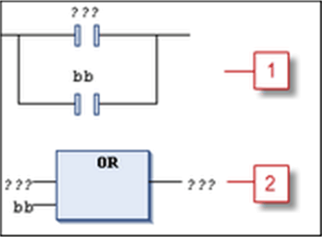 该触点预设有文本 ???。您可以单击此文本,然后将其更改为所需变量或所需常量的名称或地址(具体取决于 FBD、LD 和 IL 编辑器的 Options 对话框中的设置)。为此,您也可以使用。