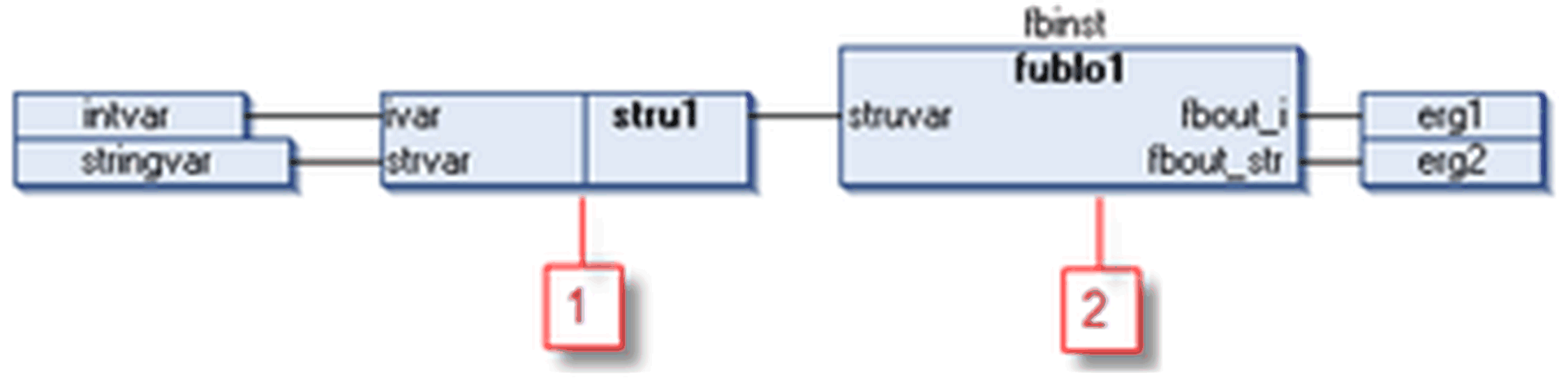 2 具有结构类型为 struvar 的输入变量 stru1 的功能块