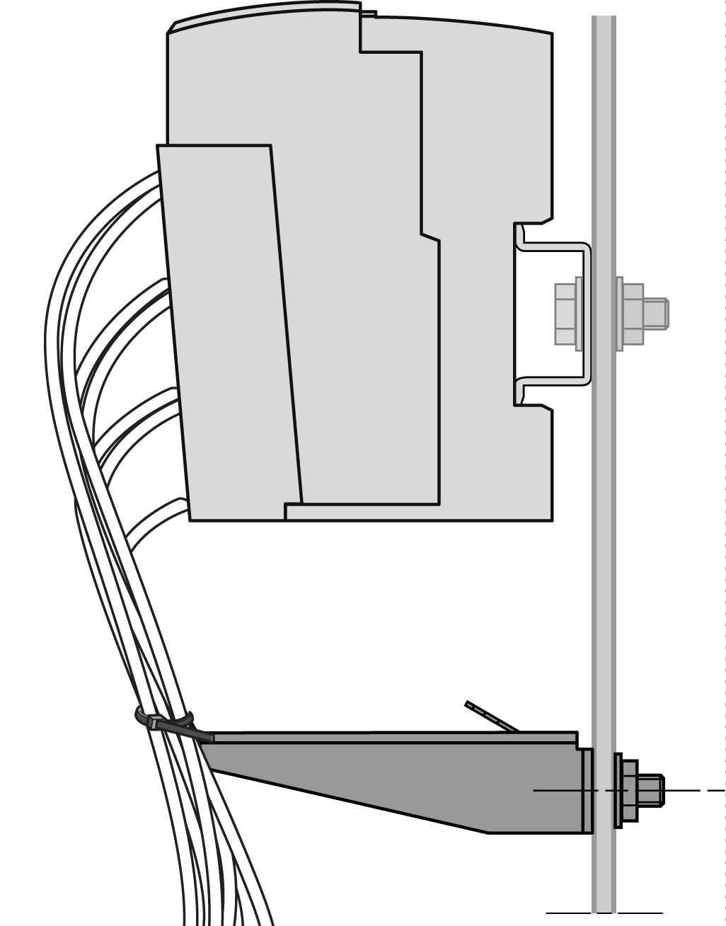 After grounding the TM5 System by means of the grounding plate TM2XMTGB, wires can be bundled and affixed to the grounding plate tabs using wire ties to reduce stress on the cables.