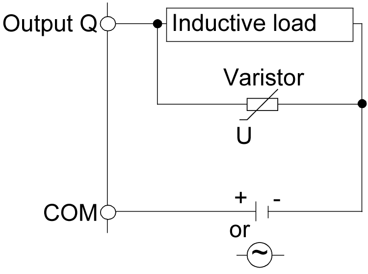 Depending on the load, a protection circuit may be needed for the outputs on the controllers and certain modules. Inductive loads using DC voltages may create voltage reflections resulting in overshoot that will damage or shorten the life of output devices.
