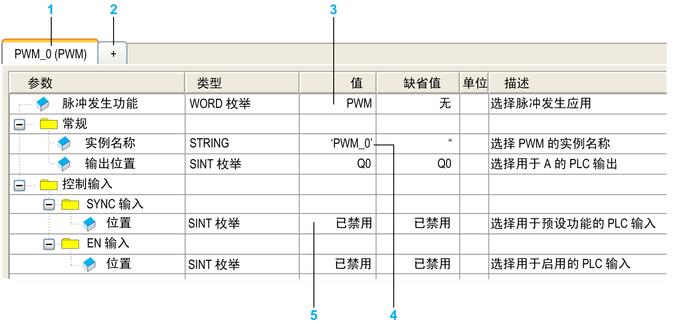 有关配置参数的详细信息,请参阅 Modicon M241 Logic Controller PTO/PWM - 库指南。