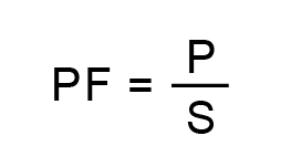 Power factor (PF) is the ratio of real power (P) to apparent power (S).