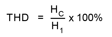 THD% is a quick measure of the total distortion present in a waveform and is the ratio of harmonic content (HC) to the fundamental harmonic (H1).