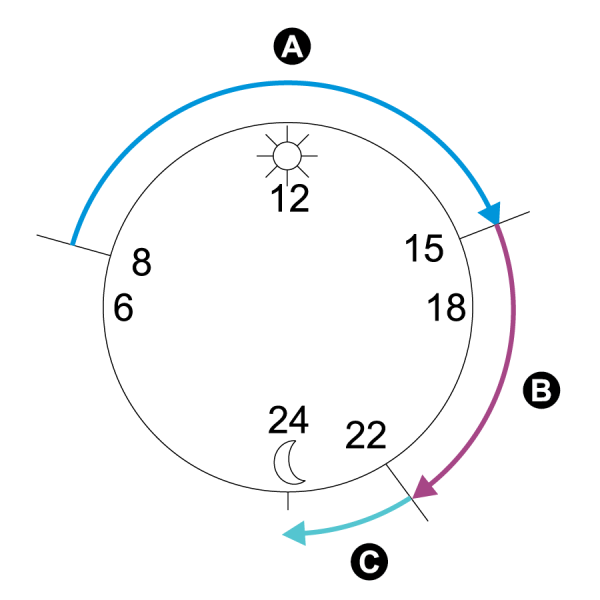 | A | First interval (08:00 to 15:00) |