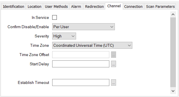 Use the fields on the Channel tab of the appropriate Channel Form to configure the basic communication properties for a channel.