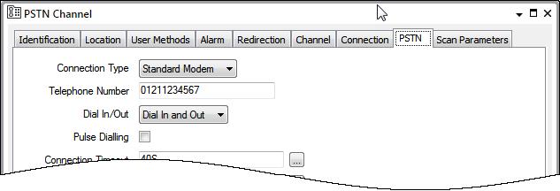 Use to define the telephone and dial-up modem properties for a PSTN channel (see Defining PSTN Settings for a Channel).