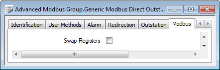 Select the Swap Registers check box if the Word values are to be swapped for use within Geo SCADA Expert. For multi-register data, the lowest numbered register contains the most significant Word.