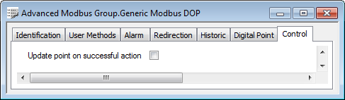 Select the Update point on successful action check box on the Control tab for the point value to be reported immediately following a successful control action.