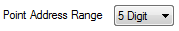 Use the Point Address Range field on the '<Driver Type>' tab to specify whether the points on a controller use a 5 Digit or 6 Digit address range. Geo SCADA Expert performs configuration time-range checking on the controller’s points according to this property.