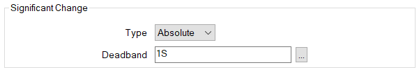 - Absolute—In addition to the reasons listed in ‘None’ above, the point value will be updated in the Geo SCADA Expert database if it changes by a defined amount.