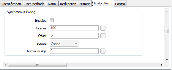 Use the fields within the Synchronous Polling section on an Advanced OPC Point Form to specify polling that Geo SCADA Expert is to apply to that particular point. The individual point polling occurs in addition to the group polls.