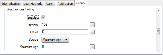 Use the fields within the Synchronous Polling section of an Advanced OPC Group Form to specify the polling that Geo SCADA Expert is to apply to all active points within that Group.