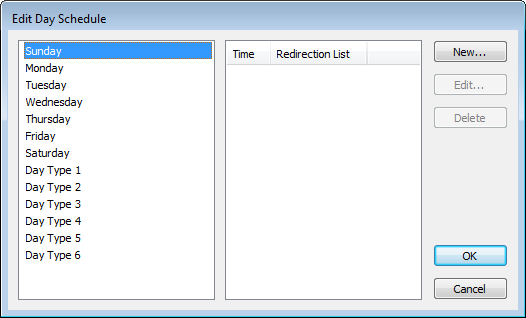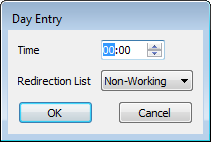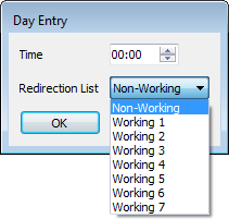 Use the window to define the schedules that you require for the day, specifically the starting time(s) for individual sets of alarm redirections.