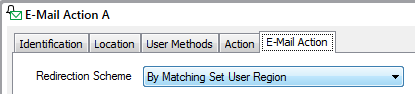 Also on the E-Mail Action tab, the Redirection Scheme is specified as 'By Matching Set User Region'. With this redirection scheme, when the redirection is triggered, Geo SCADA Expert checks the geographical region within which the alarm is located (it does this by checking the coordinates of the database item with which the alarm is associated, and then uses those coordinates to determine the geographical region within which the database item is located). Providing that the other alarm criteria are met (including the above Inhibit Action), Geo SCADA Expert redirects the alarm to those users that are 'responsible' for the region in which the alarm is located.