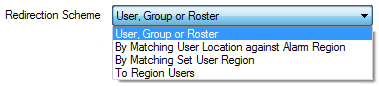 - Use the Redirection Scheme field to specify whether you want to redirect alarms to users that are in the relevant region or suitable geographical location: