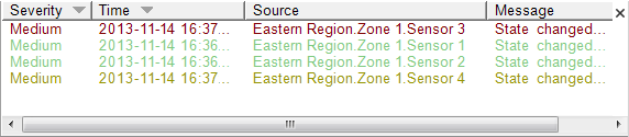 - The alarm’s color in the Alarms List changes and is no longer listed at the top of the Alarms Lists—unacknowledged alarms are listed above acknowledged alarms irrespective of the severity level.