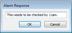 When you select either option, the Alarm Response window is displayed. Enter a suitable response comment in the field, then select the OK button.
