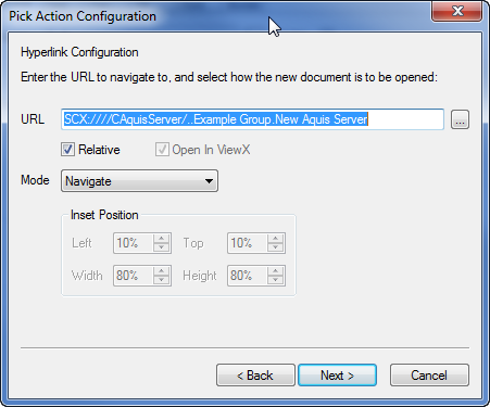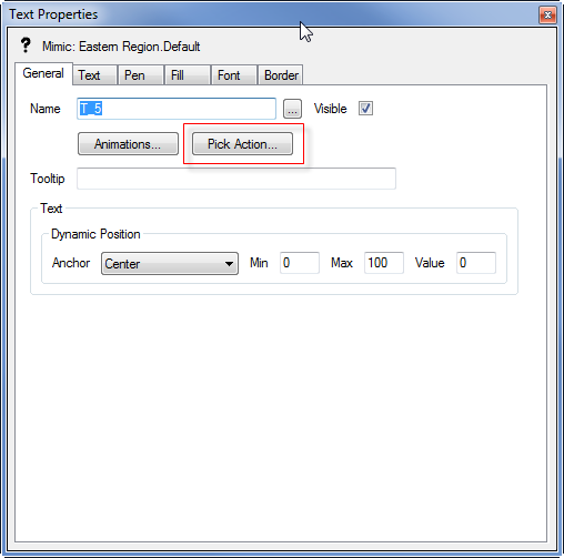 - For the Aquis Server object in your mimic to function as a button and display the Aquis Thin Client Dispay window when pressed, you need to assign a Pick Action to the object, (see Using the Pick Action Wizard to Create a Hyperlink).