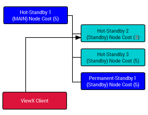 Where all nodes within a system have equal cost the client connects to the server that is currently identified as the MAIN.