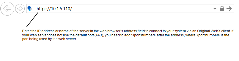 For improved security on new installations, by default the Local Proxy HTTP port is disabled, and the HTTPS port is set to 443 (see Define the Local Proxy Settings for the Original WebX Server). However, if the Local Proxy HTTP port is enabled then non-secure HTTP connections to the server will be possible. If the HTTP port is set to well-known port 80, then you will be able to specify an HTTP address as described below. For any other HTTP ports, you have to include the port number in the address.