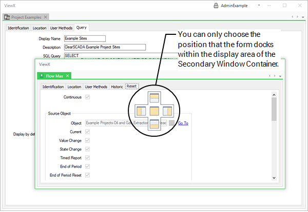 If you have Primary and Secondary Window Containers, you can move a document or configuration Form from one Window Container to another and choose the position that the document or configuration Form is docked.