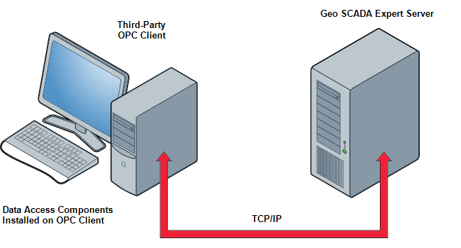 You can use a third-party OPC client application to access your Geo SCADA Expert system. To do this, you need to install the Data Access components of Geo SCADA Expert on the same PC as the third-party OPC client application. You will also need to configure the third-party application so that it can make a connection to the Data Access components (as the Data Access components handle the communications to the Geo SCADA Expert server).