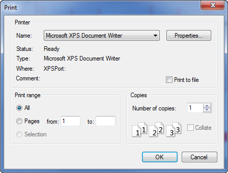 When you select Print for a selected feature, for example a Trend, a standard Print window is displayed.