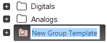 A Group Template is added to the selected group or system, and appears as a Group Template folder in the Database Bar tree structure. The Template is selected automatically, ready for you to define its name.