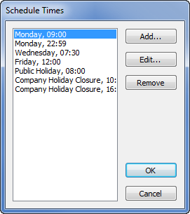 - Select the OK button to add the new time to the Schedule Times window.