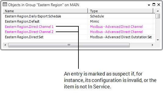 You can display a list of the database items within a Group that have invalid configuration. Geo SCADA Expert displays the list in the Messages window (see Correcting Invalid Configuration).