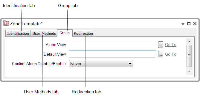 The Alarm Redirection feature is not used on Group Templates—the items in the Template are not ‘live’ items and do not raise alarms. Similarly, the User Methods feature is not used on Group Templates. However, you can configure these features on items within a Group Template, so that the required functionality is made available to the corresponding items in each Instance of that Template.