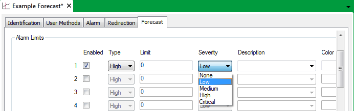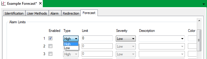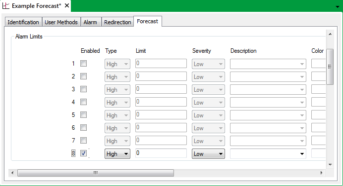 You can specify up to eight limits for which Geo SCADA Expert is to raise alarms should any Forecast values exceed those limits.
