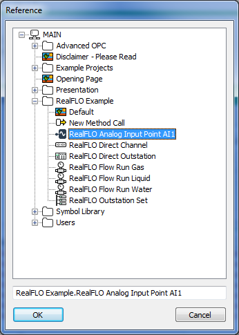 Select the browse button to display a Reference browse window. Select the required database item from the window.