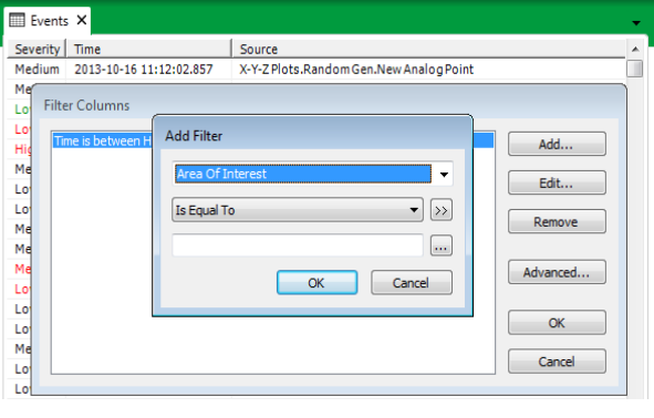 - An additional Areas of Interest section becomes available for use on the Alarms List’s Filter window, to enable filtering of the Alarms List by Area of Interest.