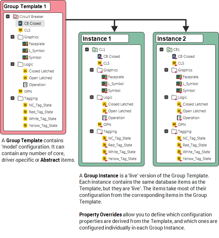 The topics in this section provide an overview of the various components and features that are associated with Group Templates and Group Instances. You can include up to 16 levels of Groups (including Group Templates and Group Instances) in your database. This is in addition to the Root Group.