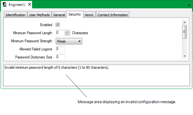 Geo SCADA Expert displays messages relating to mandatory and invalid configuration in a message area at the bottom of configuration Forms.