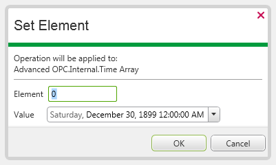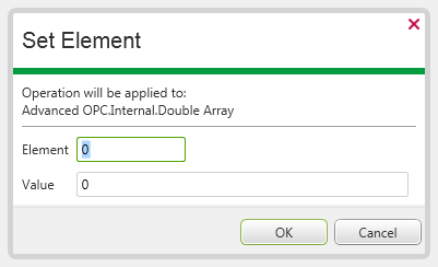 In each case, select the OK button to confirm the entries and set the value for the specified element of that Variable’s array.
