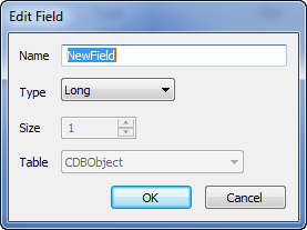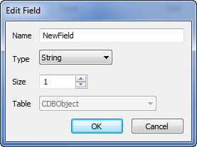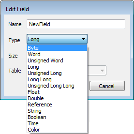 - Type—Use this combo box to specify the type of data that the field is to contain. The option that you select here affects the type of value that the field supports and the options that are available from the context-sensitive menu for the cells.