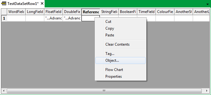 - For the path to the property to be relative to the Data Set Row’s location, drag the required item from the Database Bar into the relevant Data Set Row cell.