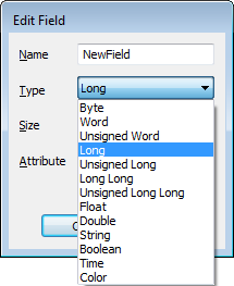 - Long—The field is to contain signed 4-byte (32-bit) values.