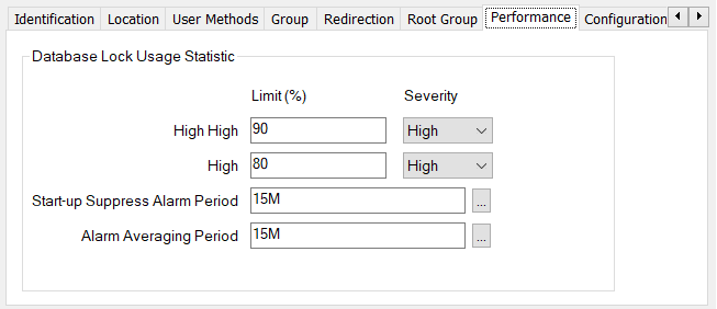 The value that you specify in this field helps to reduce the number of 'false positives' by controlling when the Lock Usage Statistic is to raise an alarm. Only if the average Lock Usage Statistic value across the 'Alarm Averaging Period' exceeds the High or High High limits is an alarm raised.