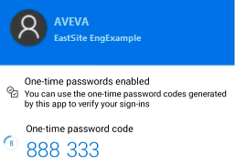 Whenever a user whose User Account is configured for two-factor authentication attempts to log on to any of the above databases, they are presented with a One-Time Password Authentication window. The window displays the Company Name and System Name, together with the username of their User Account. The user uses this information to identify which authenticator account that they need to use to obtain a valid one-time password that they need to enter into that window. The authenticator account on the authenticator app also displays the same information, to help identify which authenticator account they need to use. To complete the authentication process, the user enters into the One-Time Password Authentication window the one-time password that they obtain from the authenticator account . Geo SCADA Expert authenticates that one-time password and then logs the user onto that particular system.