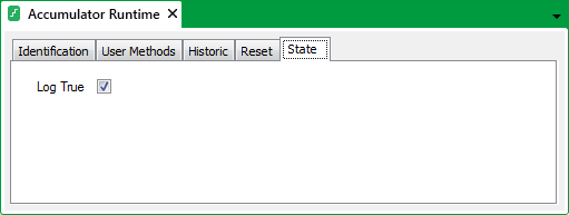Use the Log True check box on the State tab of the Runtime Accumulator Form to specify when the Runtime value increments:
