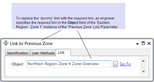 In the Group Template, a ‘dummy’ location is specified in each Link Parameter’s Object field: