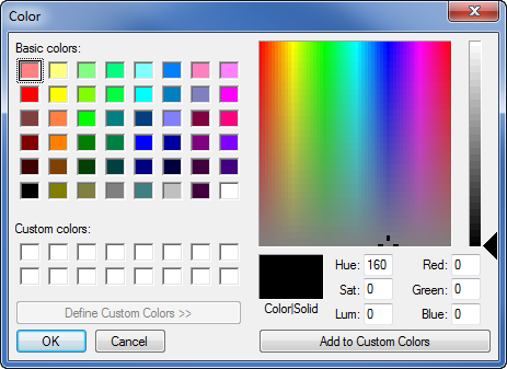 When you select the ... option on a pop-up color palette, the Color window is displayed (for information on accessing the color palette, see Using the Color Window to Define a Color).