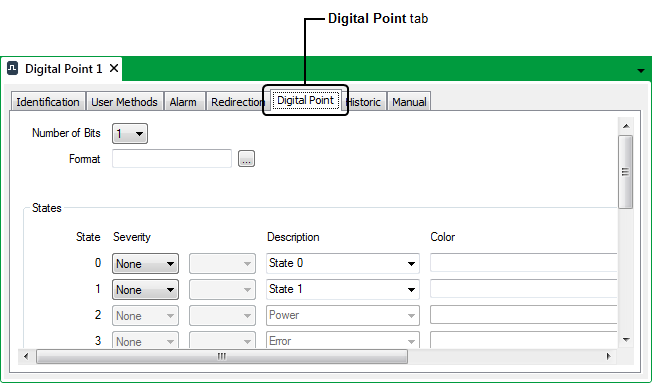 You configure each digital point on your system by using the fields on the appropriate Digital Point Form. Each Form has several tabs, which you use to define different aspects of the point configuration.