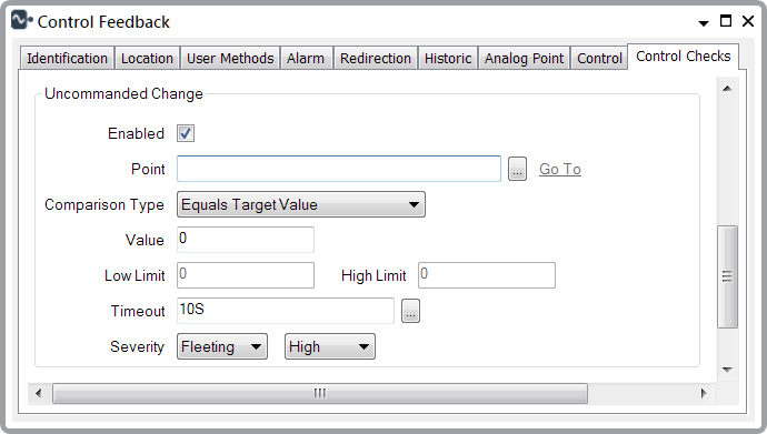 Use the fields within the Uncommanded Change section of the Control Checks tab to configure an Uncommanded Change check (for more information, see Configuring Control Checks Settings).